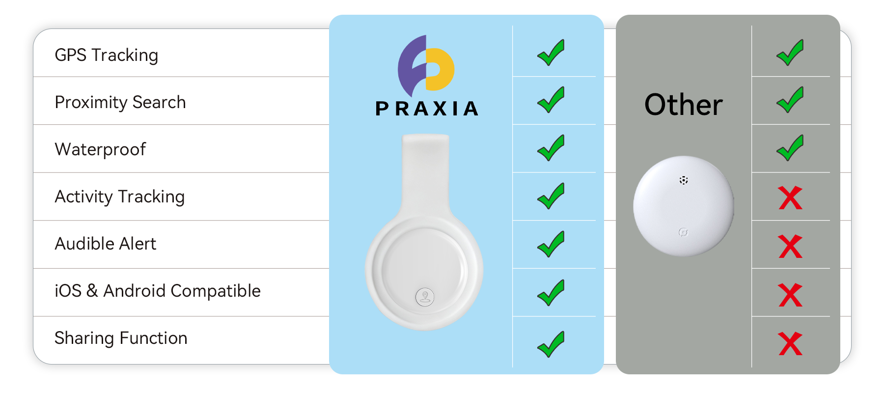 Praxia GPS tracker features outstanding compatibility. It easily connects and seamlessly syncs data with both iOS and Android devices. One device meets all your needs, making usage simpler and more flexible.